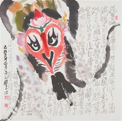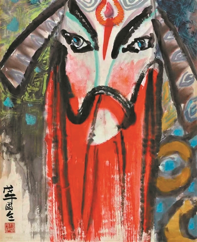 “在广美附中,我就画过很多戏剧舞台速写。画脸谱,应该是20世纪60年代末开始,早期的脸谱画还倾向写实。大约在1972年,我在广州的一家报纸上发表了第一张脸谱画,从此开始了对脸谱题材的探索。”
