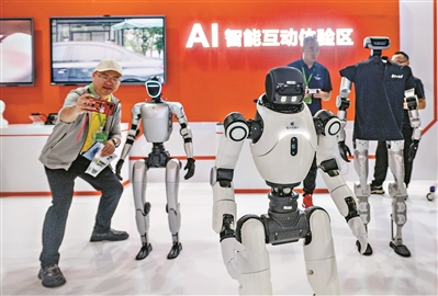 知识产权交易博览专馆,参观者与机器人互动。广州日报全媒体记者廖雪明摄