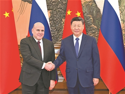 米舒斯京转达普京总统对习近平主席的亲切问候和良好祝愿。米舒斯京表示,祝贺中共二十届四中全会成功举行,相信中国一定会顺利实现“十五五”规划建议确定的目标,取得更大经济社会发展成就。两国元首今年两次会晤,对俄中关系发展作出战略规划,巩固了俄中全面战略协作伙伴关系。俄方愿同中方一道,落实两国元首达成的重要共识,深化经贸、科技、能源、农业、数字经济等领域合作,密切人文交流,加强多边协调配合,推动两国合作取得更多成果。