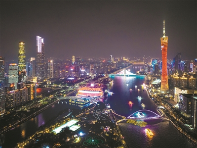 一江两岸,夜景迷人。图为“广州之夜”灯光秀。广州日报全媒体记者苏俊杰、王燕摄