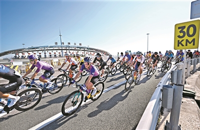 昨日,第十五届全国运动会公路自行车男子个人赛决赛开赛,全程231.8公里,选手经过港珠澳大桥,跨越粤港澳三地。这是全运会历史上首次举办跨境比赛。新华社发