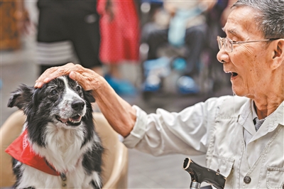 长者与志愿者带来的“狗医生”互动。