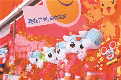 广州一场慈善活动中,义卖摊位展示的慈善吉祥物。