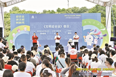 广州大学城新时代文明实践主题公园启用仪式上,在场嘉宾发出《文明迎全运》倡议。