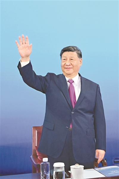 11月9日晚,中共中央总书记、国家主席、中央军委主席习近平在广东省广州市出席中华人民共和国第十五届运动会开幕式并宣布运动会开幕。这是习近平在主席台上向大家挥手致意。 新华社发