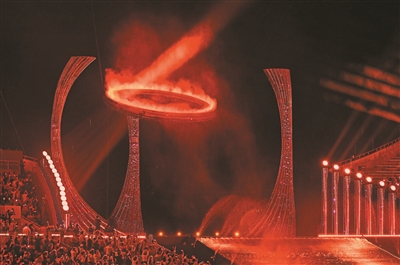 火炬塔由圆形火环、三根支撑柱和机械旋转底盘三部分组成,由艺术家、建筑师、工程师和工匠组成的团队,历时半年多,从样品到装置,反复试验打造完成。“这是一个从艺术到科技,再到艺术的过程。”