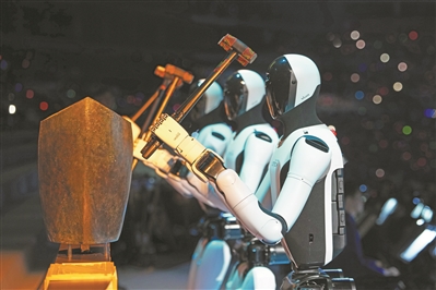 主创团队用智能机器人来演奏青铜句鑃,敲出广东音乐中的精品《彩云追月》的主旋律,上演跨越古今的对话。
