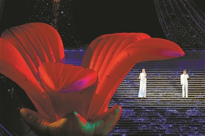 表演尾声,木棉花开放在体育场内。广州日报全媒体记者苏俊杰 摄