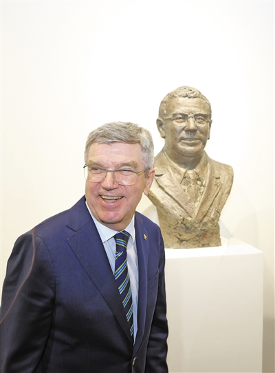 本次展览是著名“双奥”艺术家袁熙坤先生艺术生涯的全景式回顾,精心遴选了其横跨70年艺术生涯的45件代表作。在展览现场,巴赫仔细观看展品,并与在场的艺术家亲切交谈。