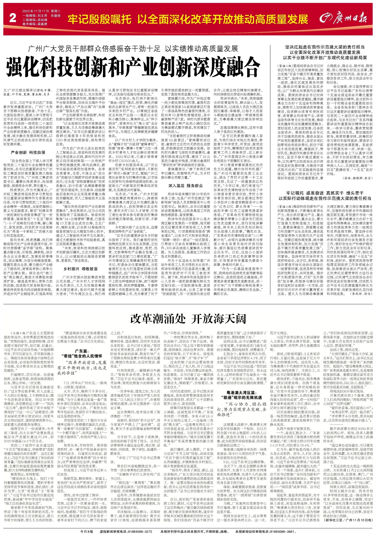 坚决扛起走在前作示范挑大梁的责任担当以全面深化改革开放推动高质量发展以实干业绩不断开创广东现代化建设新局面