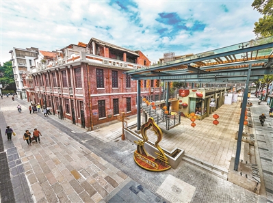 光塔街辖内解放南象牙街的百年红砖建筑群,近来成了市民打卡的新热点——这里是大湾区中医康养街区的首发区“大德・国医坊”。过去这里许多空间被用作仓储,掩盖了历史底蕴的光彩。项目延续原有街巷肌理与风貌,在修缮保护百年建筑的同时,植入中医药文化内核。这里与省中医院近在咫尺,目前已聚集王老吉、化州橘红等知名品牌,周岱翰、许尤佳、刘旭生等国医大师的工作室也将陆续开门迎客,既守住了广府的“老味道”,又酿出了产业的“新滋味”,契合越秀区生物医药与健康产业的发展定位,传统与创新在此共生共荣。