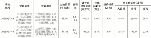 经广州市南沙区人民政府批准,广州市规划和自然资源局南沙区分局公开挂牌出让2宗国有建设用地使用权。