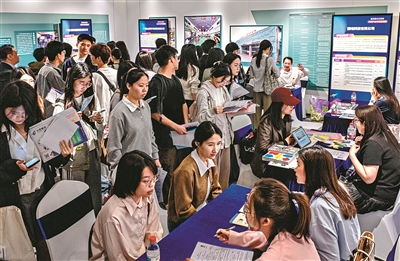 招聘会吸引了大批跨领域专业人才前来交流,不仅有文学类、艺术类专业学生,还有学习大数据、计算机开发等技术类专业的学生。“这里的招聘氛围太热烈了!”澳门科技大学空间大数据分析学硕士杨迪直言,现场招聘企业和岗位丰富程度超乎意料。