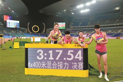 昨晚,在4×400米混合接力决赛上,广东队派出梁宝棠、孔莹蓥、何宇、莫家蝶参赛,他们最终以3分17.54秒的成绩夺冠,这也是广东田径队在本届全运会上夺得的首枚金牌。