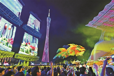 昨晚,曾在十五运会开幕式上亮相并刷屏全网的“大鳌鱼”再度“游”回。这条金光熠熠的“大鱼”来到亮灯仪式现场,引来观众阵阵欢呼与镜头追逐。记者获悉,“大鳌鱼”成为今年灯光节的“常驻嘉宾”,接下来在海心沙亚运公园星光大道展区静态展出。观众可前来打卡,欣赏它与广州塔相映成趣的“广式浪漫”。