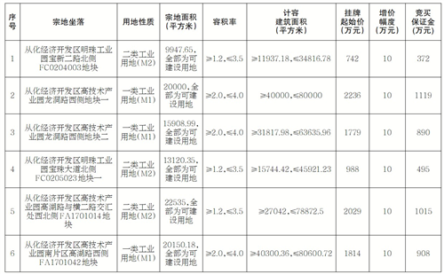 经广州市从化区人民政府批准,广州市规划和自然资源局从化区分局以挂牌方式出让6宗地的国有建设用地使用权。现将有关事项公告如下: