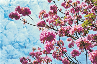 11月14日,阅江中路,蓝天下的紫花风铃木。