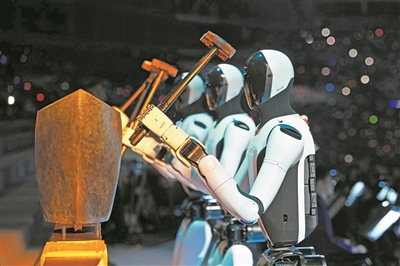 智能机器人奏响青铜句鑃。新华社发