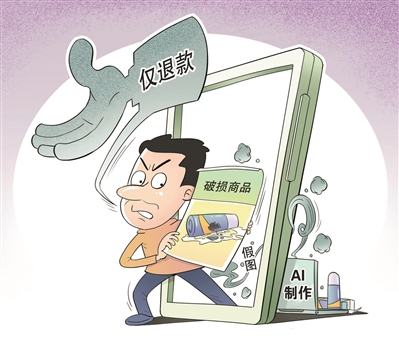 把新鲜水果P成发霉的,把鞋袜衣物P成破洞的,把化妆品P成损坏的……近期,部分买家利用AI制作假图申请“仅退款”的情况越发猖狂。有的图片“一眼假”,有的更是连AI水印都没处理干净就发了出来。用AI工具来薅“仅退款”的羊毛,这种“小聪明”要不得。这种行为不仅违背诚信、涉嫌违法,情节严重者更可能构成诈骗罪。小心聪明反被聪明误,别偷鸡不成蚀把米。