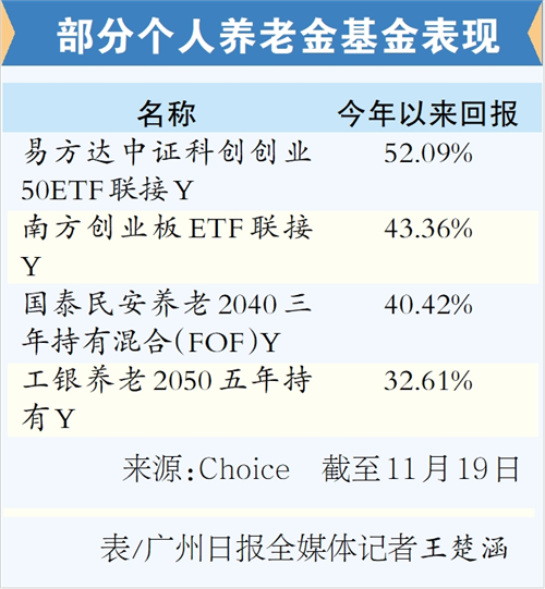 广州日报讯 (全媒体记者 王楚涵)今年以来,个人养老金基金收益表现颇为亮眼,300多只个人养老金基金的平均收益超15%,多只基金更是高达50%以上。那么,面对数百款个人养老金基金,投资者该如何选择呢?