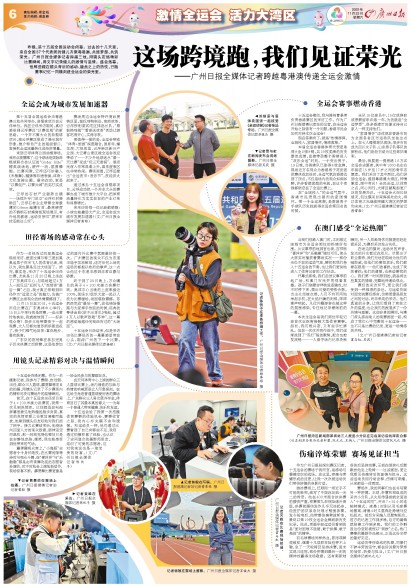 昨晚,第十五届全国运动会闭幕。过去的十几天里,来自全国37个代表团的健儿齐聚粤港澳,共逐梦想、共筑荣光。广州日报全媒体记者跨越三地,用镜头定格精彩比赛瞬间,用文字记录健儿的激情与温情。盛会落幕,但那些藏在镜头背后的感动、键盘之上的热忱,已随赛事记忆一同镌刻进全运会的荣光里。