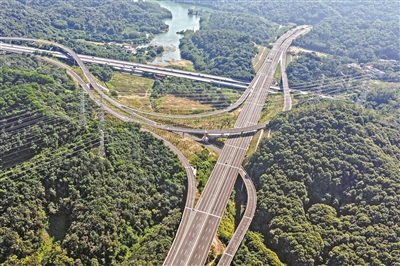 机场第二高速南段全线穿行中心城区,沿线建筑与管线密集,大部分区域需采用桥梁、隧道形式穿行,项目桥隧比高达89.6%。为此,项目以“高速公路建设与城市空间、生态保护并重”为原则,将绿色发展理念贯穿工程全周期,书写出城区高速的“生态答卷”。