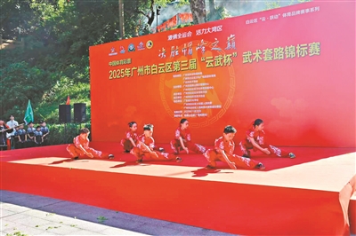 广州日报讯 (全媒体记者吴多 通讯员李萌摄影报道)前日,“决胜帽峰之巅”2025年广州市白云区第三届“云武杯”武术套路锦标赛在帽峰山盛大开赛。赛事会聚近500名武者同台竞技,比赛项目数超600项,共决出200余项单项冠军,规模创历届之最。恰逢第十五届全国运动会圆满落幕,赛事在彰显中华武术传统风采的同时,进一步激荡起了湾区体育活力的澎湃浪潮。