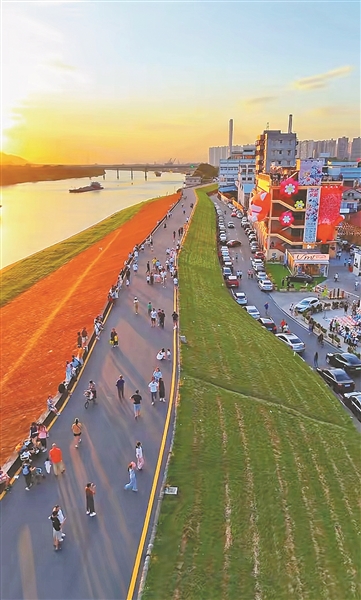 傍晚5点,北江大桥的车流突然慢了下来。车窗陆续摇下,手机镜头对准江面——橙红的云霞给城市的天幕鎏金,渔船划过的波痕里,碎光粼粼如撒落的琥珀。这是清远人近来最熟悉的下班仪式:2025年入秋以来,连续几十天的绝美晚霞,让这座北江畔的城市陷入“暮色狂欢”,也催生出一场关于“夕阳经济”的深度思考。连日的火烧云,令北江大桥上电动车扎堆,市民停下来拍夕阳的画面在朋友圈热传。这种“晚霞消费”意外激活了沿岸业态:白庙渔村的临江民宿推出“晚霞下午茶”,石角大堤的“村咖”把露天座位延伸到草甸,甚至有村民在堤岸支起折叠桌,向来此打卡的游客售卖自制的姜撞奶和晚霞明信片。