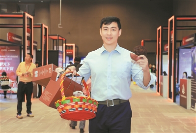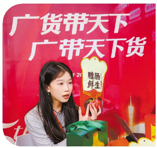 直播达人正在展示货品。图/广州日报全媒体记者王燕
