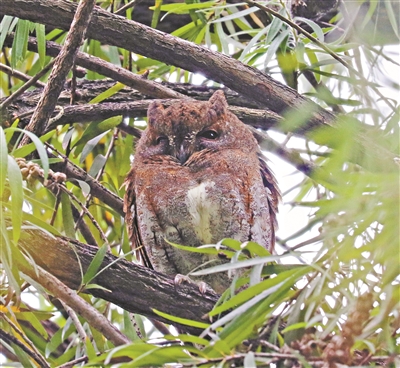 近日,红角鸮现身海珠湖,由青少年观鸟爱好者江玥晴发现。张陆欣供图