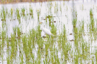 中白鹭现身海珠湿地水稻田,由湿地工作人员在日常巡护中发现。张政炀供图