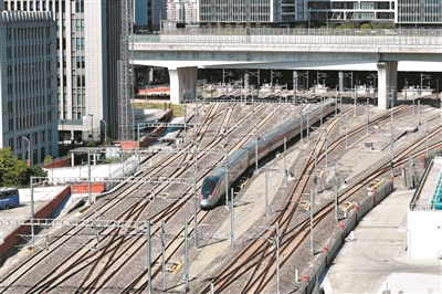 广湛高铁试运行列车驶离广州白云站。