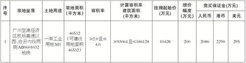 经广州市人民政府授权,广州空港经济区管理委员会以挂牌方式出让1宗地块的国有建设用地使用权。现将有关事项公告如下: