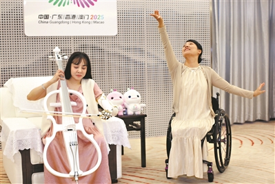 科技让艺术家们在享受便利的同时,可以自如地表达艺术。黎淑喻(左)的义肢、洪晨琳(右)的轮椅均来自大湾区企业。 广州日报全媒体记者王维宣 摄