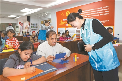 Hesham与女儿参加社区组织的非遗剪纸活动。