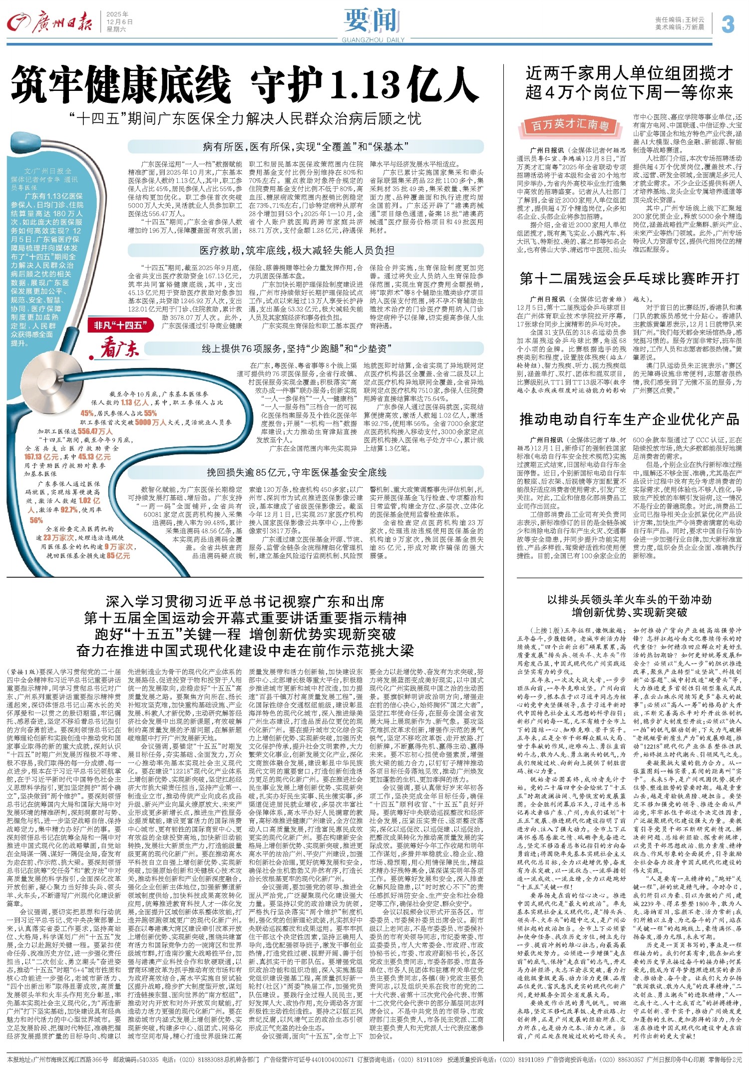 深入学习贯彻习近平总书记视察广东和出席第十五届全国运动会开幕式重要讲话重要指示精神跑好“十五五”关键一程 增创新优势实现新突破奋力在推进中国式现代化建设中走在前作示范挑大梁