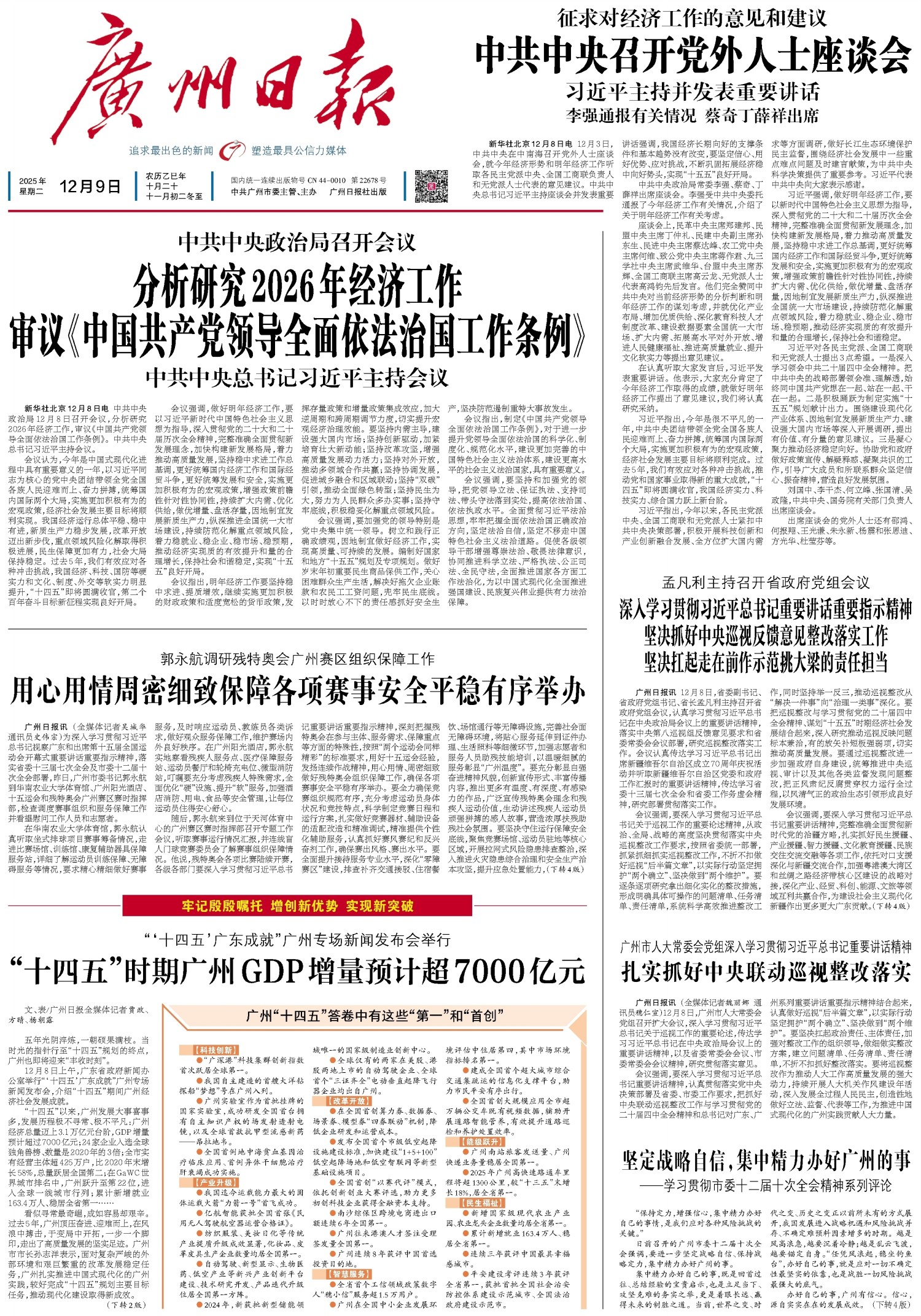 分析研究2026年经济工作 审议《中国共产党领导全面依法治国工作条例》