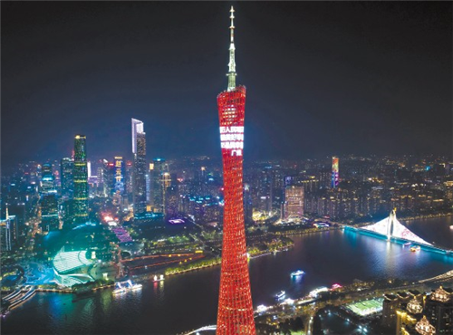 昨晚,广州塔为广州上榜“2025最具幸福感城市”亮灯。广州日报全媒体记者苏俊杰 摄