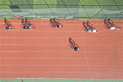 2月12日,肇庆市体育中心,航拍广东铁三队自行车训练。