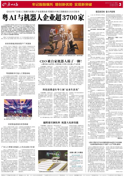 当前,人工智能与机器人产业迎来快速发展期。《AIR珠江指数报告(2025)》显示,截至2025年11月,广东省人工智能与机器人企业超3700家,人工智能与机器人上市企业超150家。而广深汇聚了全省84%的人工智能企业和65%的机器人企业。