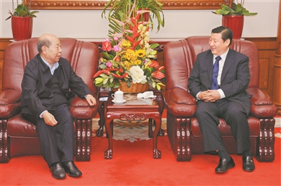 2008年12月2日,习近平同志在广东松园宾馆看望王丙乾同志。