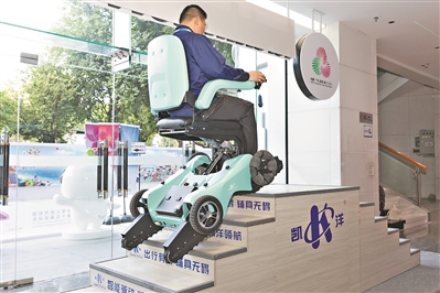 全地形爬楼梯机器人呈现大湾区助残科技创新成果的生动实践。广州日报全媒体记者陈忧子 摄