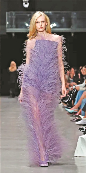 此外,2026春夏时装周上的“羽毛”元素也浪漫崛起。秀场所见,Issey Miyake以橘红色羽毛礼服包裹模特,如摇曳花瓣般灵动;Chanel用亮彩羽毛缝制蓬裙,繁复工艺赋予香槟金礼服层次趣味;Stella McCartney的紫色羽毛洋装则如绒毛般轻盈柔软,迷人至极。