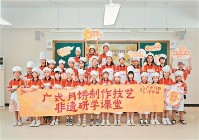 正果镇中心小学的同学们在学习广式月饼制作技艺。 校方供图