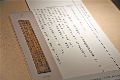 主办方专家介绍,本次展览展出的里耶秦简和南越木简年代接近,出土的地理位置南北相邻,同出于古井,又同为文书档案,是秦汉时期最直接、最鲜活的文字实证。