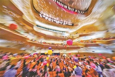 大剧院向观众抛出寓意吉祥的幸福气球。