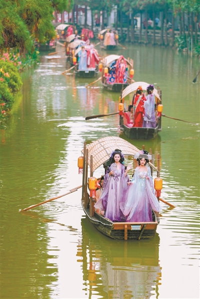 广州日报讯 (全媒体记者耿旭静、董业衡、莫伟浓 通讯员区泳铟 摄影报道)元旦假期三天,南沙区东涌水乡寻花游园会暨首届水上花神大赛举行。市民游客快来感受可玩可感的国风盛宴。首届水上花神大赛堪称游园会的视觉焦点,湾区汉服爱好者齐聚水上舞台,衣袂飘飘如仙子临波,才艺比拼婉转灵动,搭配盛大汉服巡游,步步皆景、帧帧如画。