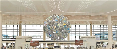在T3航站楼的出发区,一颗巨大的悬浮“静谧光之星球”正静候您的到来。这是享誉国际的丹麦艺术大师奥拉维尔·埃利亚松为广州白云机场量身打造的艺术作品。致力于探索自然、感知与空间微妙联结的这位艺术家,将他标志性的跨学科创作方式融入这件作品。他的工作室如同一个融合数学家、工程师与匠人的实验室,曾将纽约东河的瀑布、泰特美术馆的太阳带入城市景观。如今,他将木棉花态与东方五行智慧,藏进一个发光的十二面体中,构建出这座宛如“光之万花筒”的诗意现场。