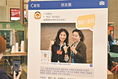 1月17日下午,广州市政协委员陆续抵达会场报到,图为委员在展板前合影。广州日报全媒体记者杨耀烨 摄