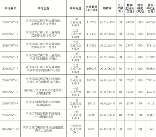 经广州市南沙区人民政府批准,广州市规划和自然资源局南沙区分局公开挂牌出让10宗国有建设用地使用权。